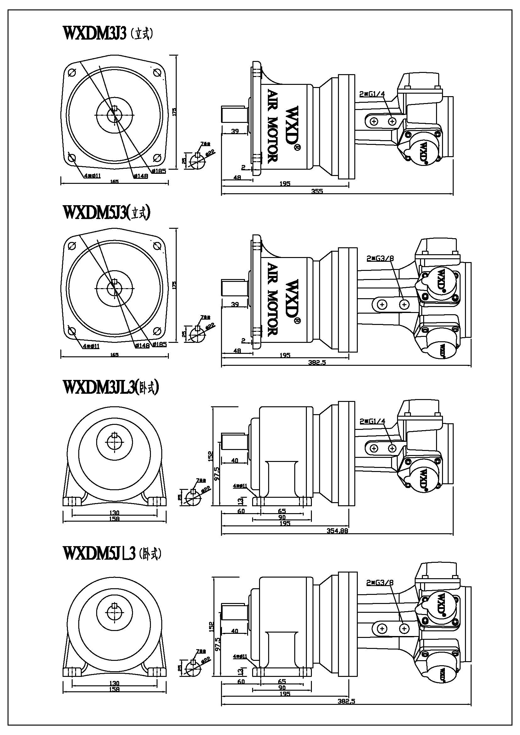 WXDM5JL(臥式安裝)  WXDM5RV氣動(dòng)減速馬達(dá)配渦輪蝸桿減速機(jī)